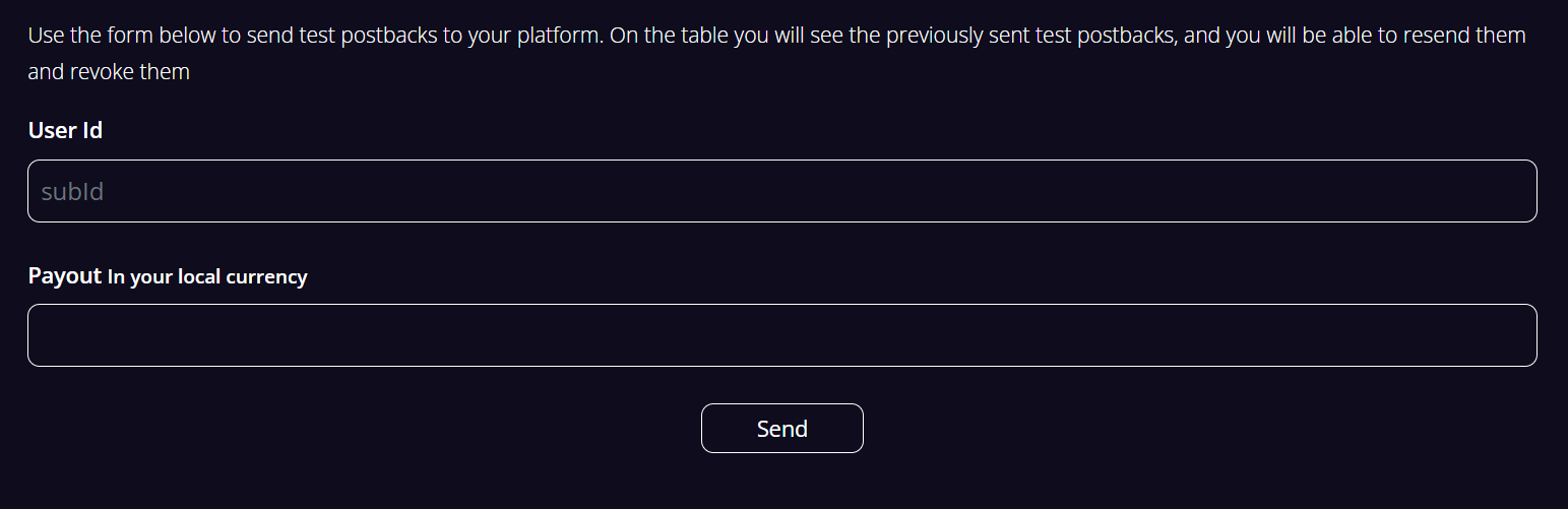 Specify your postback URL. Once a user completes an offer, we'll make a call to this URL, sending all necessary information to help you credit the virtual currency to your users. Refer to the postback section for more details.
